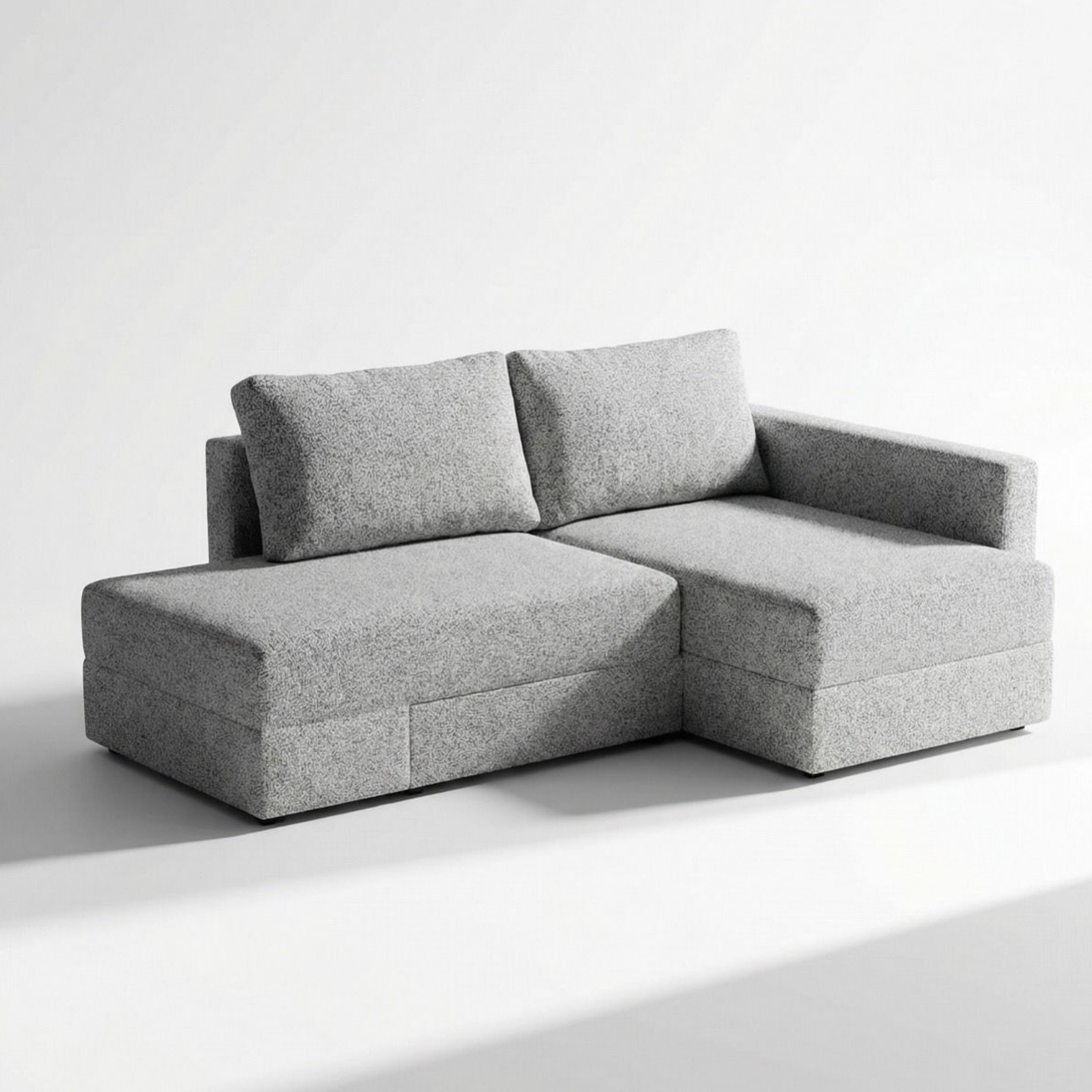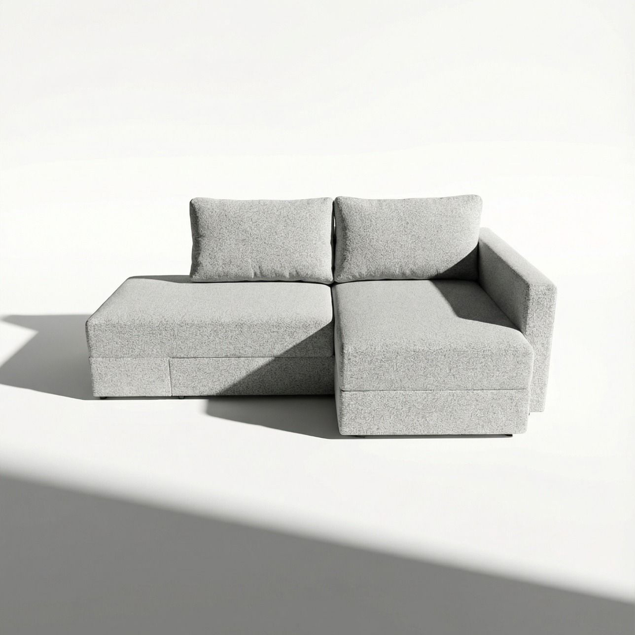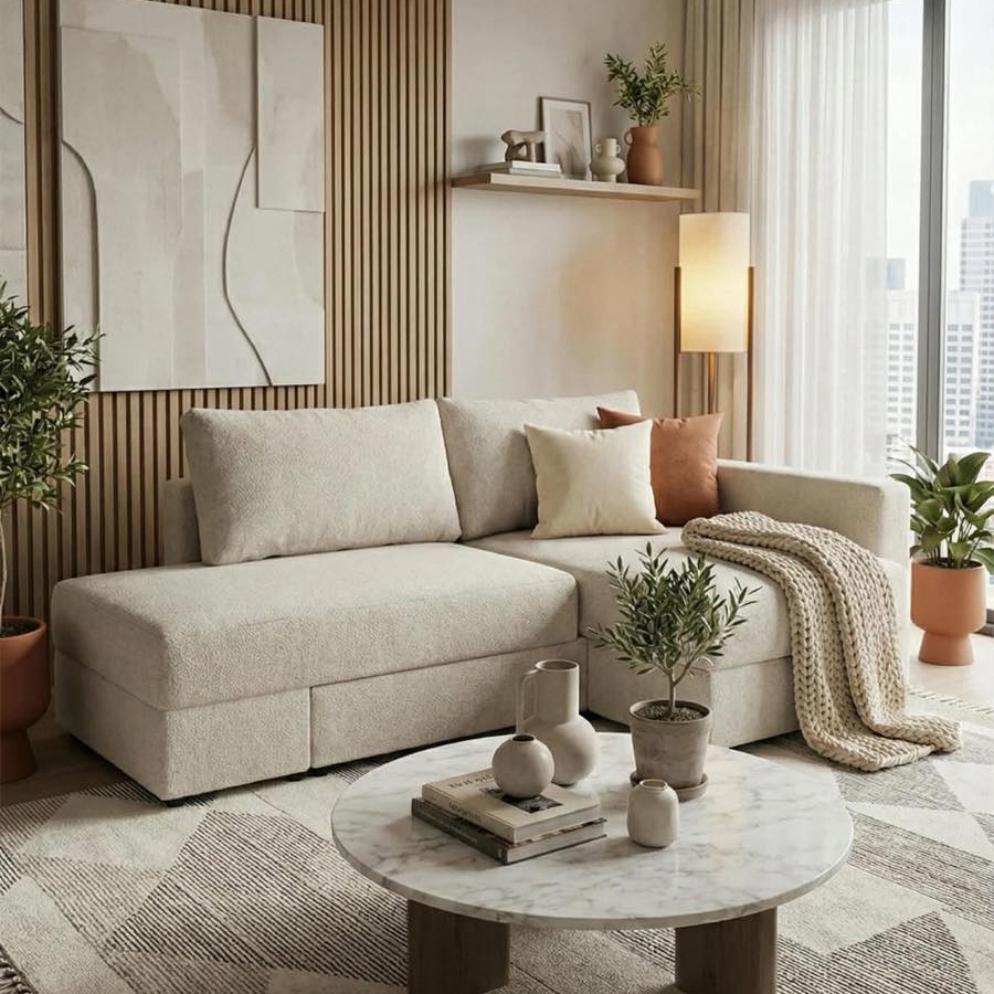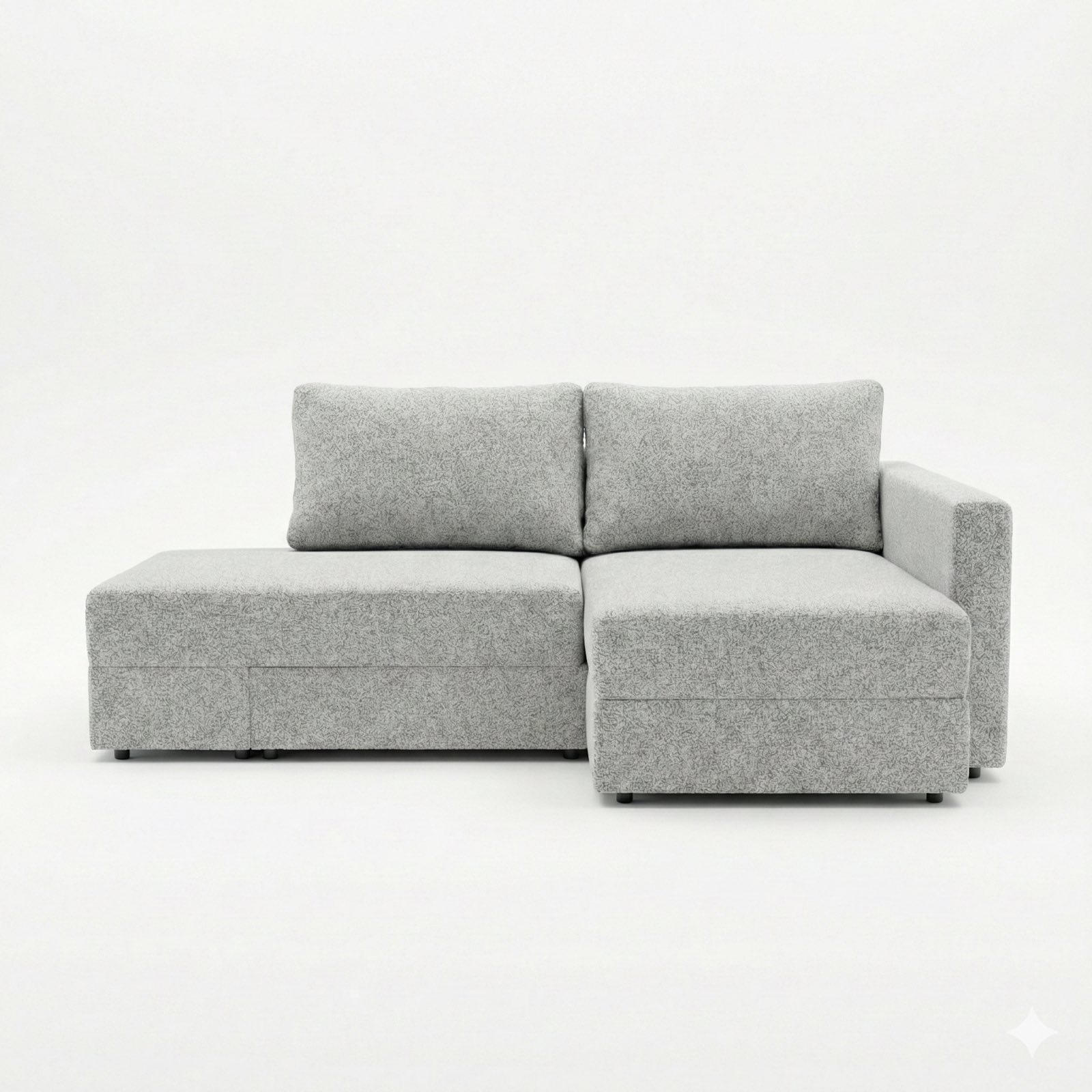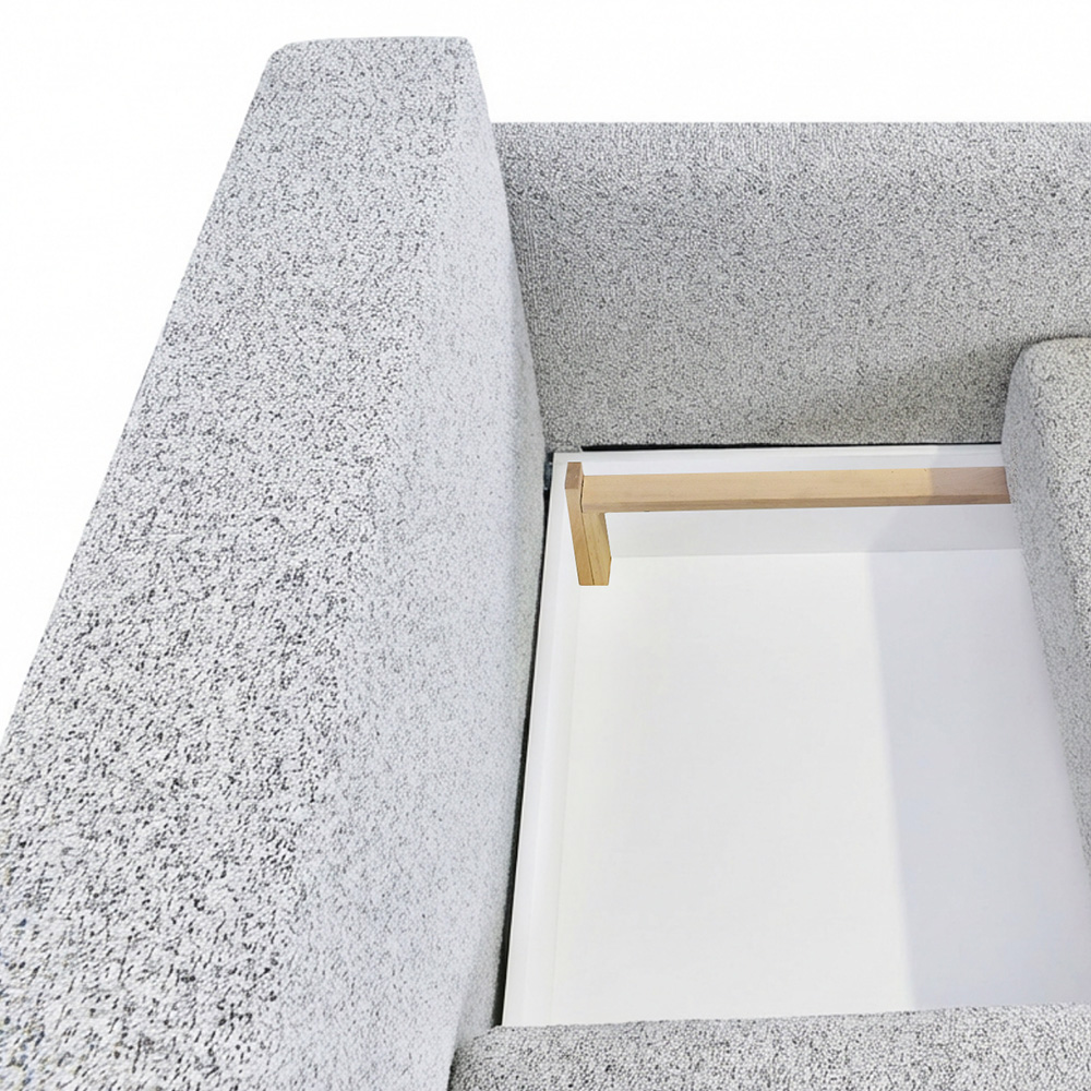 Ova moderna i funkcionalna ugaona garnitura idealna je za male stanove i prostore koji zahtevaju pametno iskorišćenje svakog kvadrata. Poseduje praktičnu kutiju za odlaganje, savršenu za posteljinu ili druge stvari. Garnitura se lako može koristiti i kao francuski ležaj, pružajući dodatni komfor za spavanje. U sedištu i naslonu nalazi se kvalitetno žičano jezgro koje obezbeđuje dugotrajnost, stabilnost i udobnost. Jednostavan, elegantan dizajn lako se uklapa u različite stilove enterijera.